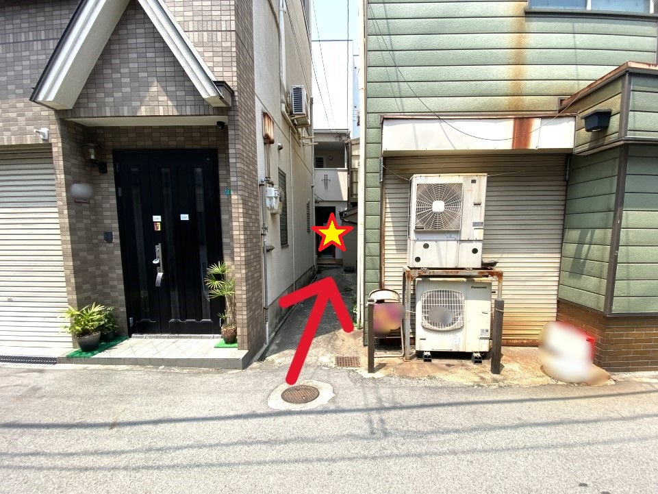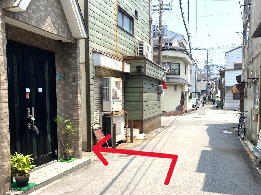 家と家との間にある細い道を左折、奥に私たちの家がございます。