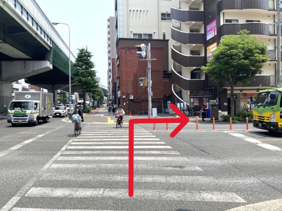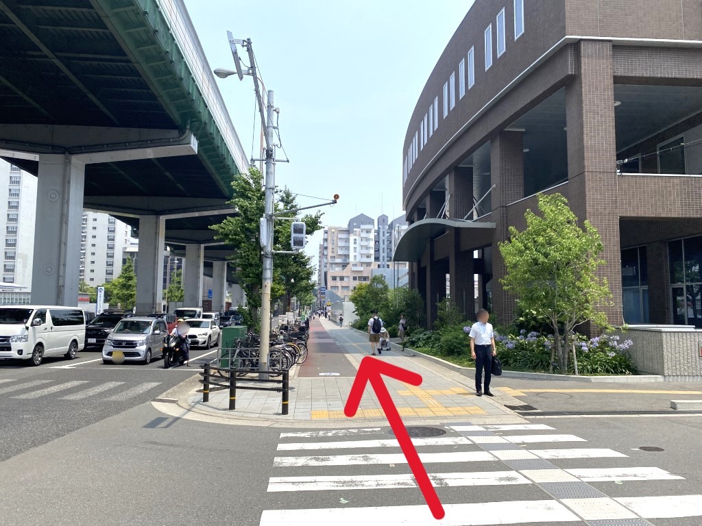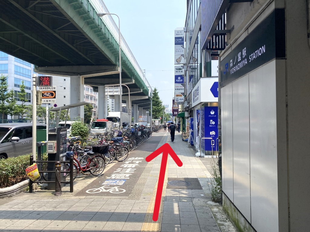 Exit the JR Morinomiya Station North Gate, walk straight, and turn right at the main road.