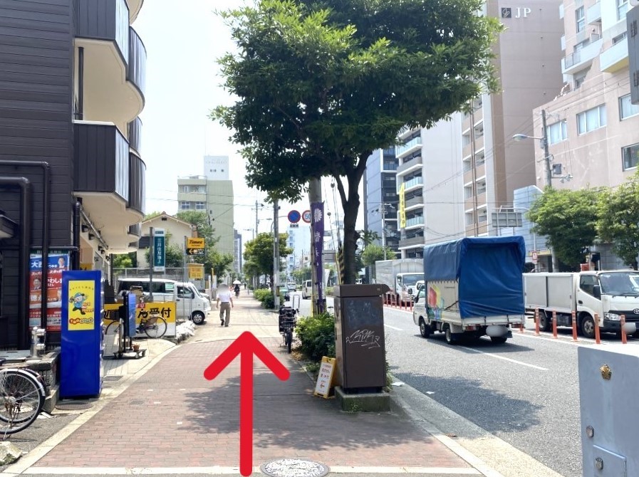From the station, cross the second traffic light and turn right, then walk straight for about 300 meters.