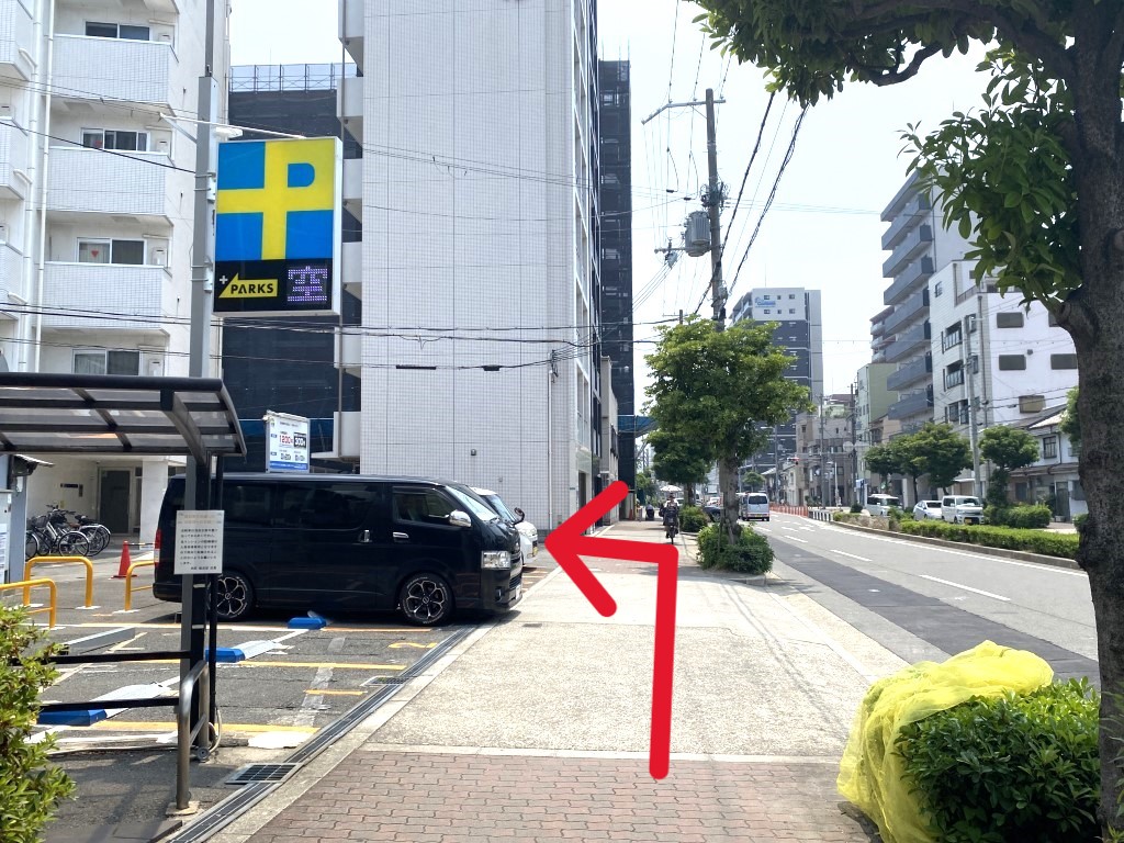 コインパーキングを通り過ぎて左折。